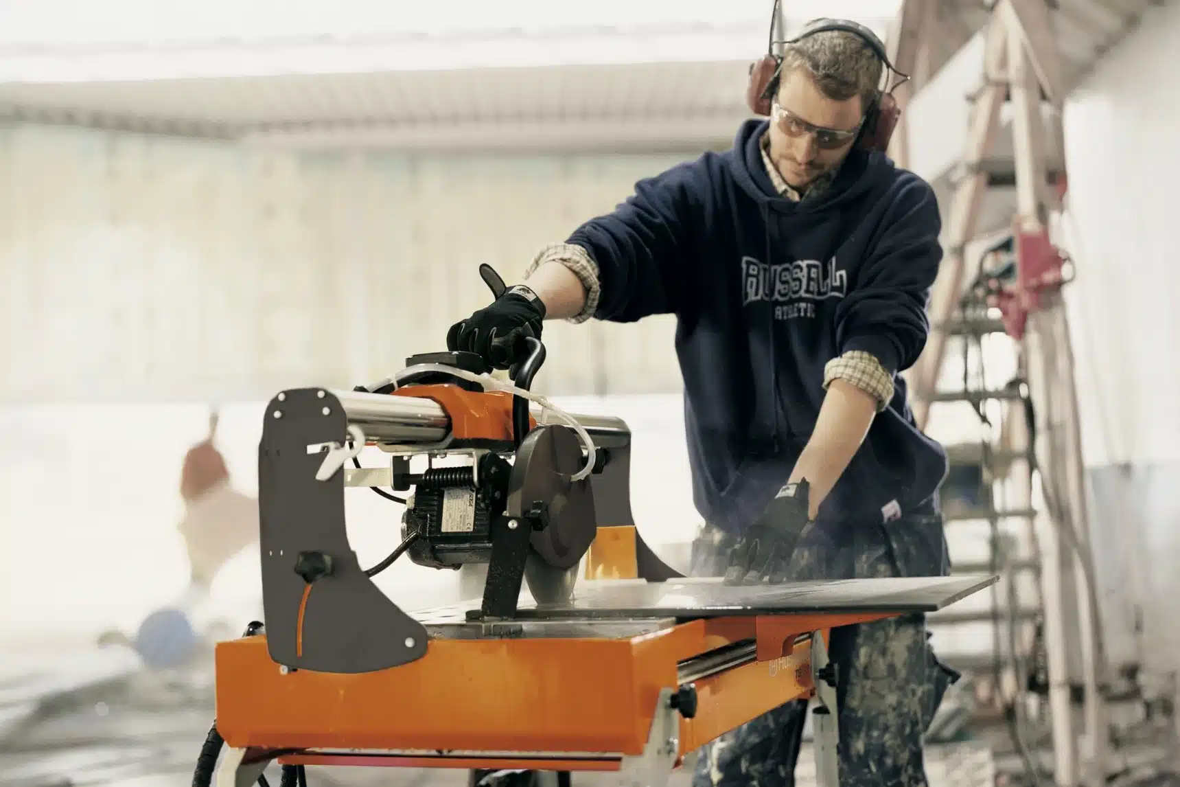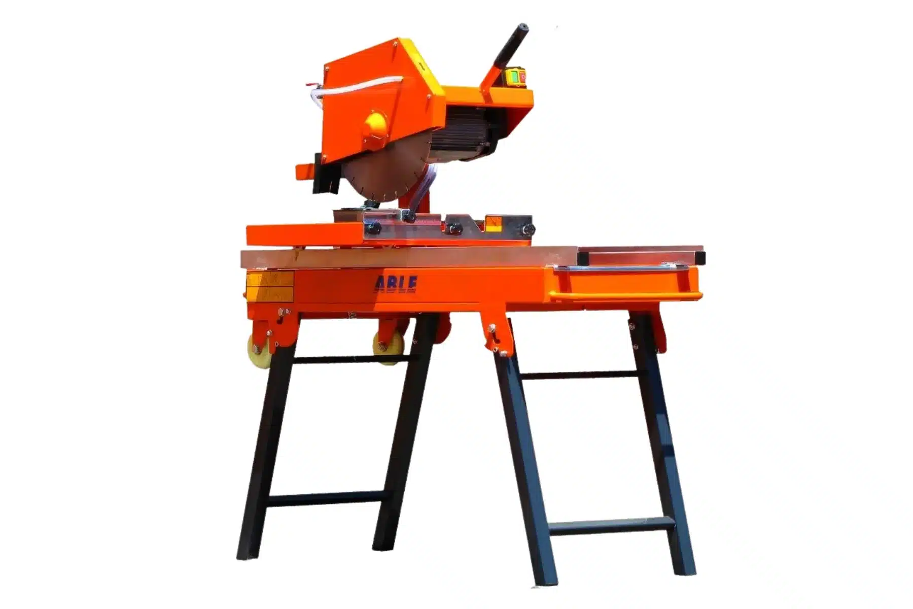 A heavy-duty electric brick saw suitable for cutting thick blocks and bricks. Its foldable legs and robust construction make it ideal for demanding projects.