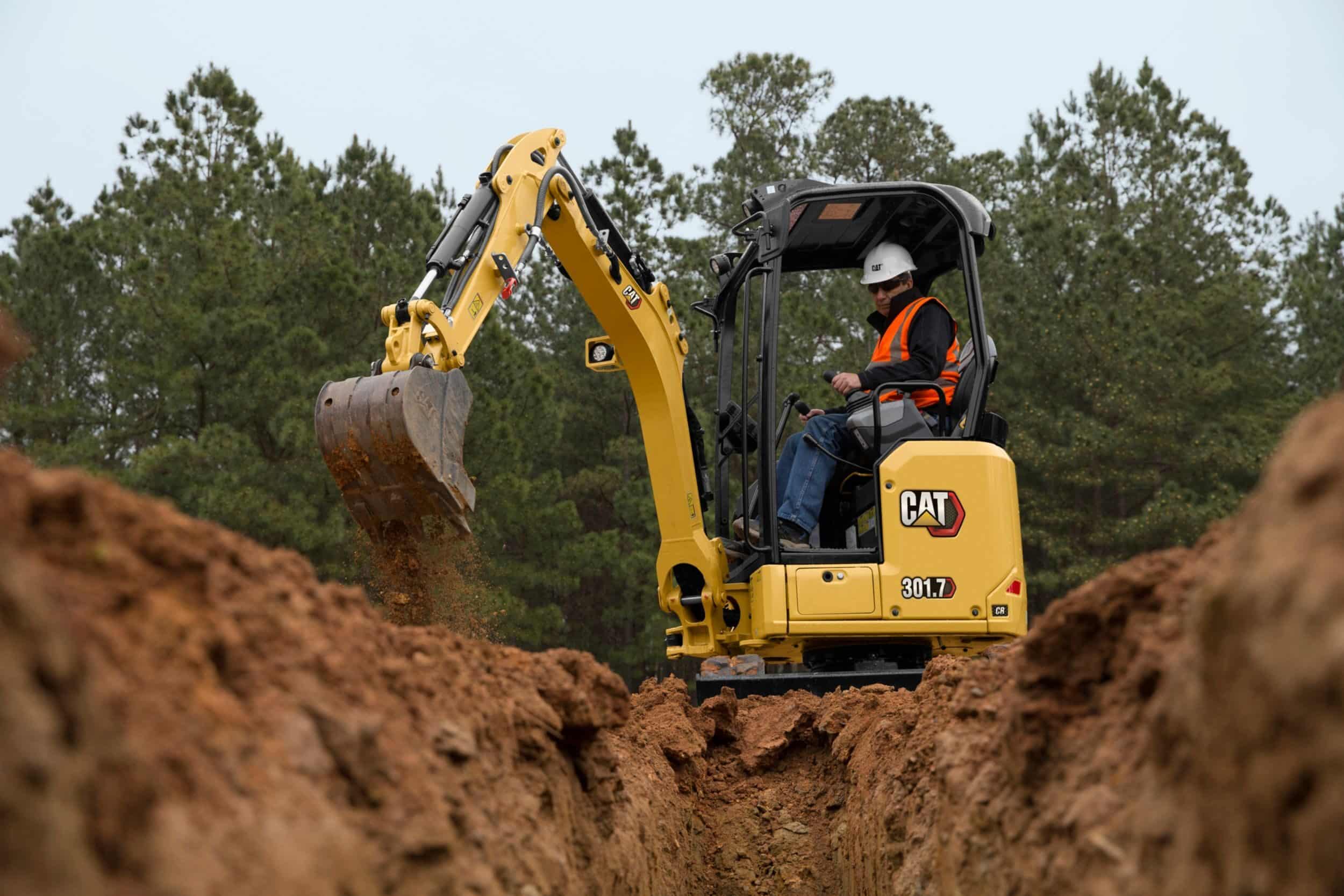 An ultra-compact, zero tail swing excavator with adjustable track width, perfect for working indoors or in narrow urban areas. Great for plumbing, demolition, and precision digging.